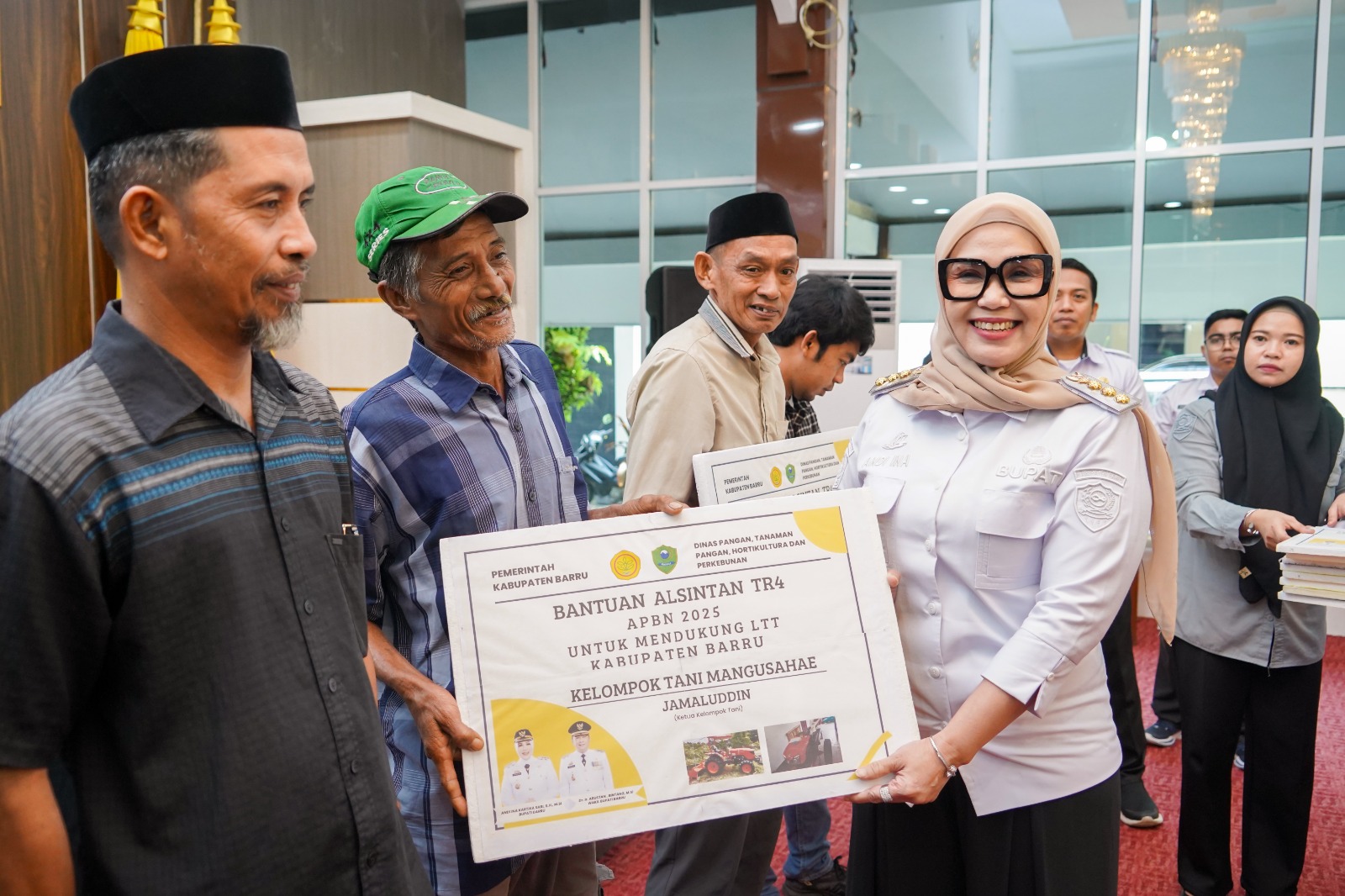 Barru –Bupati Barru Andi Ina Kartika Sari, S.H. M.Si menyerahkan bantuan Alat dan Mesin Pertanian (Alsintan) yang bersumber dari APBN Tahun 2025 guna mendukung program Luas Tambah Tanam (LTT) di Kabupaten Barru. Penyerahan berlangsung di Baruga Singkeru Adae, Rabu (4/3/2026).